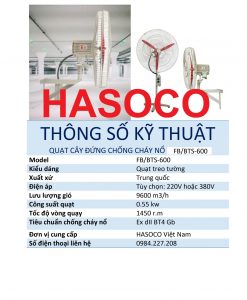 1.Thông số kỹ thuật Quạt cây đứng công nghiệp chống cháy chống nổ Hiroko FB-600 (BTS-600) HASOCO: